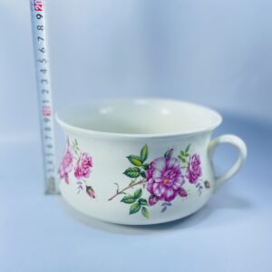 The gently flared rim and comfortable side handle make this piece both practical and decorative. Its generous bowl shape makes it ideal for serving soup, cream soups, desserts, or even as a decorative floral bowl. The timeless floral pattern gives it a soft cottage and vintage tea-set appeal.