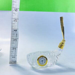 The front includes a built-in mini analog clock with Roman numerals, framed in a gold-tone bezel, adding both charm and practicality. A matching gold-tone pen holder stem rises gracefully from the back, making it perfect for desks, offices, or display shelves.