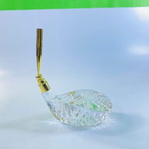 This beautiful vintage crystal pen holder is a refined decorative piece that combines functionality with classic elegance. Crafted from clear cut crystal, it features a curved, boat-shaped design with intricate faceted detailing that reflects light beautifully.