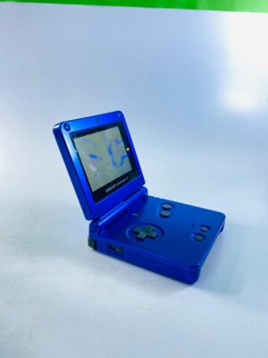 This original Nintendo Game Boy Advance SP handheld console features the iconic clamshell (foldable) design that protects the screen and buttons when closed. Finished in a vibrant blue color, this model is one of Nintendo’s most popular and collectible handheld gaming systems.