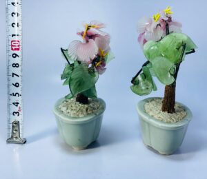 Perfect for adding decorative interest without maintenance, these floral arrangements work beautifully as tabletop accents, shelf décor, or display pieces in cabinets. Each piece has slight variations in shape and arrangement, enhancing their unique and collectible character.