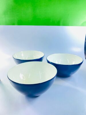 This beautiful set of three vintage ceramic bowls features a striking deep blue glazed exterior paired with a clean white interior, creating a timeless and elegant contrast. Made in England, these bowls reflect classic mid-century ceramic craftsmanship with smooth curves and a minimalist yet stylish design.