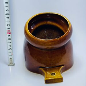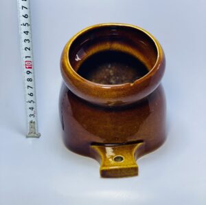 Originally designed for practical household use—such as a match holder or small wall container—this piece now serves beautifully as a decorative collectible. Its simple yet distinctive form reflects traditional mid-20th-century utilitarian pottery, where function and craftsmanship were combined with subtle aesthetic appeal.