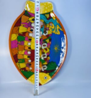 This ceramic fish wall plate is a joyful and expressive decorative piece that brings warmth, color, and cultural character to any space.