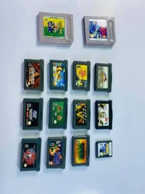 This vintage mixed lot includes a selection of original Nintendo Game Boy (DMG) and Game Boy Advance (GBA) game cartridges, featuring a variety of classic and well-known titles from different genres such as sports, action, adventure, and family games.