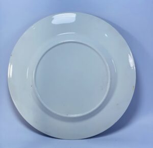 Crafted from glazed porcelain, the plate has a smooth, glossy finish and is intended primarily for decorative display. The reverse side is plain, making it suitable for wall mounting or cabinet presentation.