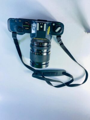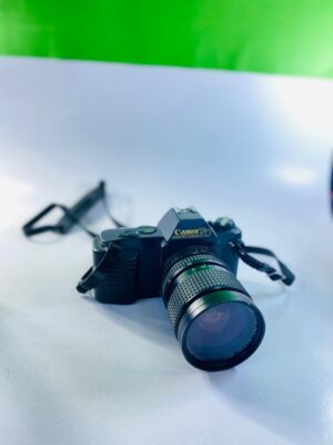 This vintage Canon 35mm SLR film camera is a classic example of Canon’s renowned build quality and timeless design. Featuring a solid black body with traditional manual controls, this camera was built for photographers who appreciate hands-on shooting and the authentic film photography experience.