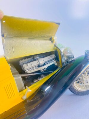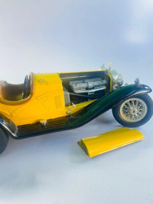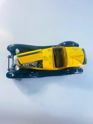 This eye-catching vintage classic roadster model car is a beautifully detailed collectible inspired by early 20th-century luxury automobiles. Finished in a vibrant yellow body with contrasting dark green fenders, the model captures the timeless elegance of classic motoring.