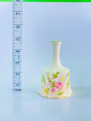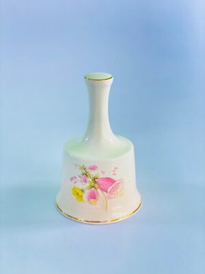 This charming vintage porcelain bell is crafted by Palissy, a well-known English ceramics maker. The bell features a graceful tapered handle and a softly flared base, finished in a creamy ivory glaze.