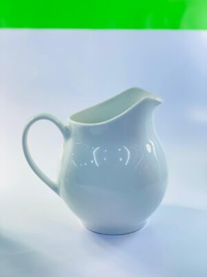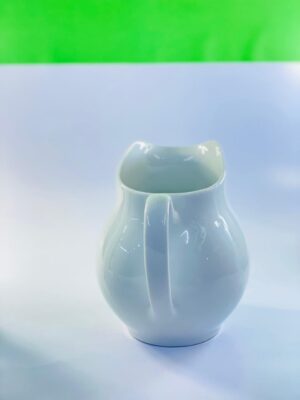 The glossy white glaze gives the piece a refined look, making it suitable for use as a cream or milk jug, a small water pitcher, or even as a minimalist bud vase. Its balanced proportions and elegant curves make it an attractive addition to a tea set, breakfast table, or display shelf.