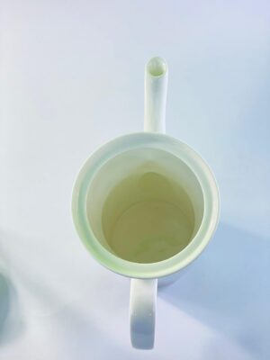 The tall, slender silhouette is complemented by a long spout and a curved handle, offering both visual balance and functional design. The matching lid completes the streamlined aesthetic, making this piece ideal for display or use as a decorative accent.