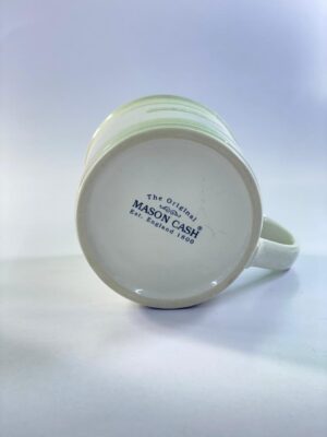 This vintage Mason Cash stoneware mug showcases the timeless quality and durability the brand has been known for since 1800. Finished in a soft cream glaze, the mug features elegant embossed horizontal bands and the iconic “The Original Mason Cash” mark molded into the body.