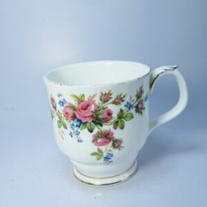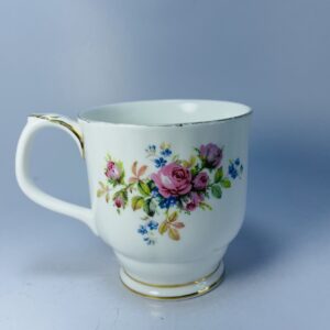 This beautiful vintage floral tea cup showcases a classic English-inspired design with delicate rose bouquets and soft pastel florals. Crafted from fine glazed ceramic in a bone-china style, the cup features graceful curves, a gently flared rim, and a refined pedestal base.