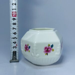 Delicate hand-painted floral motifs adorn the body, displaying small pink flowers with green and yellow accents. The subtle decoration contrasts beautifully against the clean white glaze, giving the piece a timeless and elegant appearance.