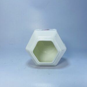This charming vintage miniature vase is crafted by Camelot China and showcases a classic mid-century design with a distinctive faceted body. Made in a creamy white milk-glass style ceramic, the vase features softly molded geometric sides that add texture and visual interest.