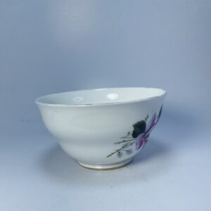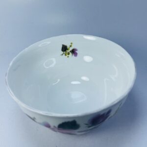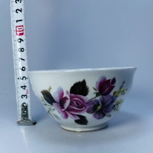This beautiful vintage porcelain bowl showcases a classic and timeless floral design. Crafted in smooth white porcelain, the bowl is adorned with hand-painted flowers in rich shades of purple, pink, and green, creating a soft yet vibrant decorative look.