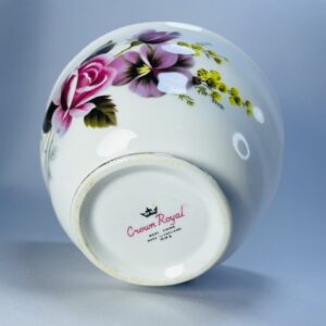 The base bears the Crown Royal maker’s mark, confirming its quality craftsmanship and collectible appeal. This piece reflects traditional floral porcelain styles, making it a lovely addition to vintage tableware collections.